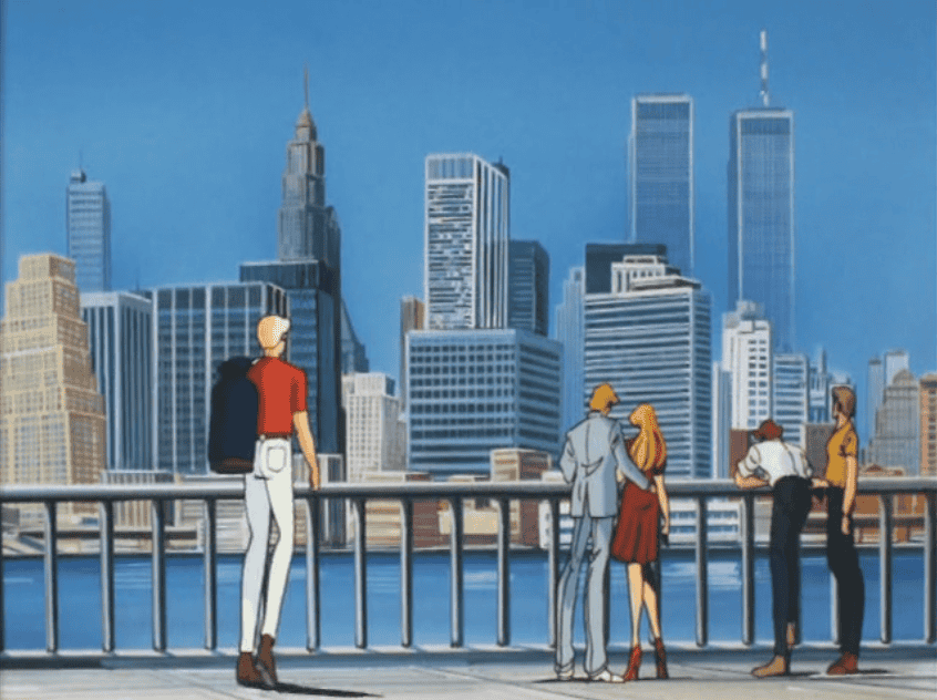 The opening shot of Antz is what appears to be the New York skyline with the WTC towers, but it really is grass. The closing shot zooms out from the anthill so we can see it is in a park in New York City, this time with the real buildings including the WTC towers on the right.