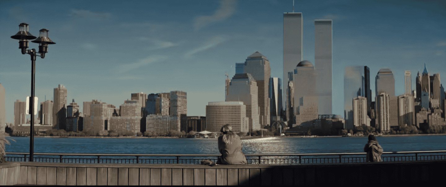 23 minutes. The restaurant scene beginning at 1 hour 30 minutes was filmed at Windows on the World, the restaurant near the top of the north tower. Visible out the window is the south tower.