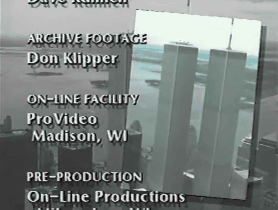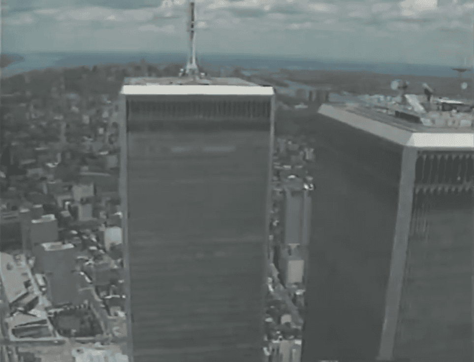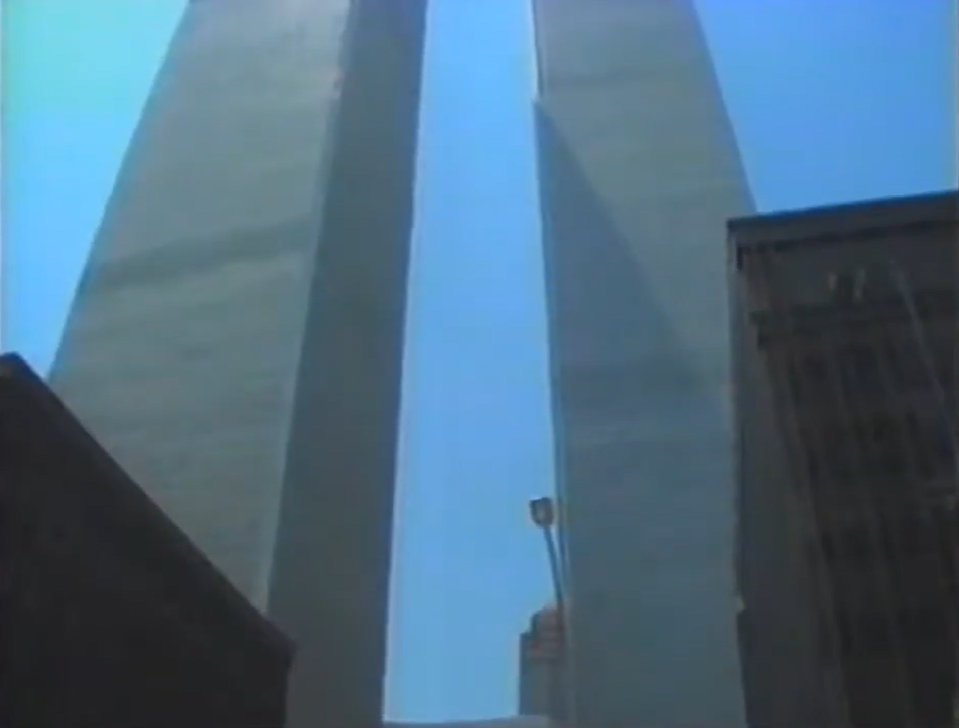Stock and documentary footage in the first two minutes, The first plane hits at 24 minutes with almost constant footage from then on. First collapse at 52 minutes, second collapse at 1 hour 8 minutes, Stock footage from pre-9/11 at 1 hour 57 minutes, 1 hour 59 minutes and 2 hours