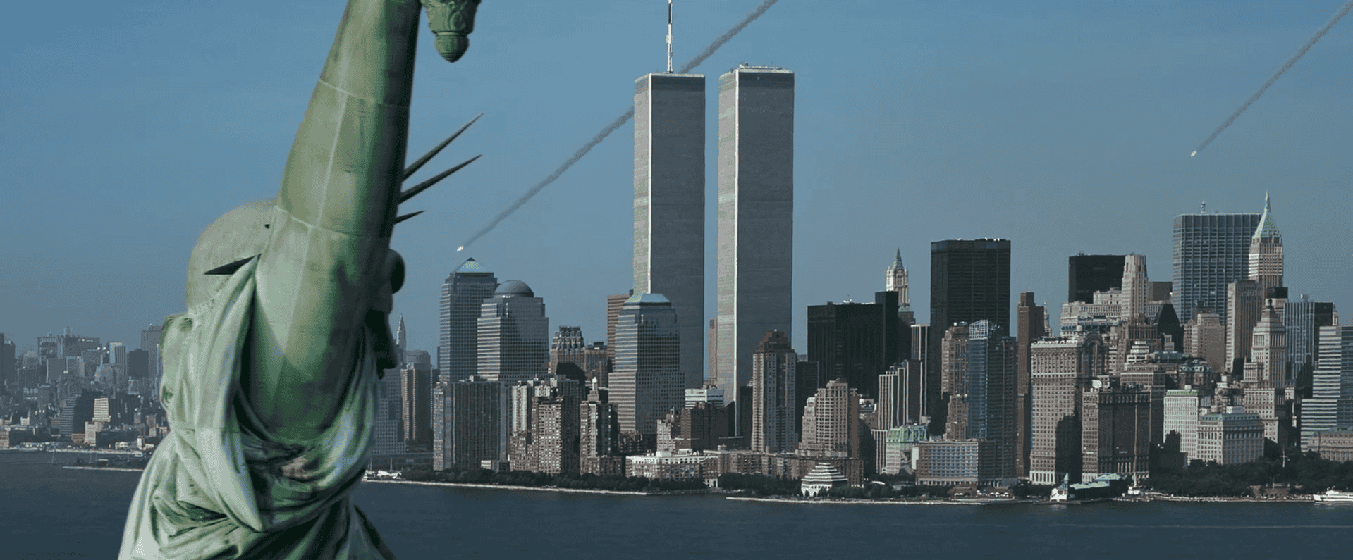Actual footage of 9/11/01 twice at 4 minutes (Shot 1, Shot 2)