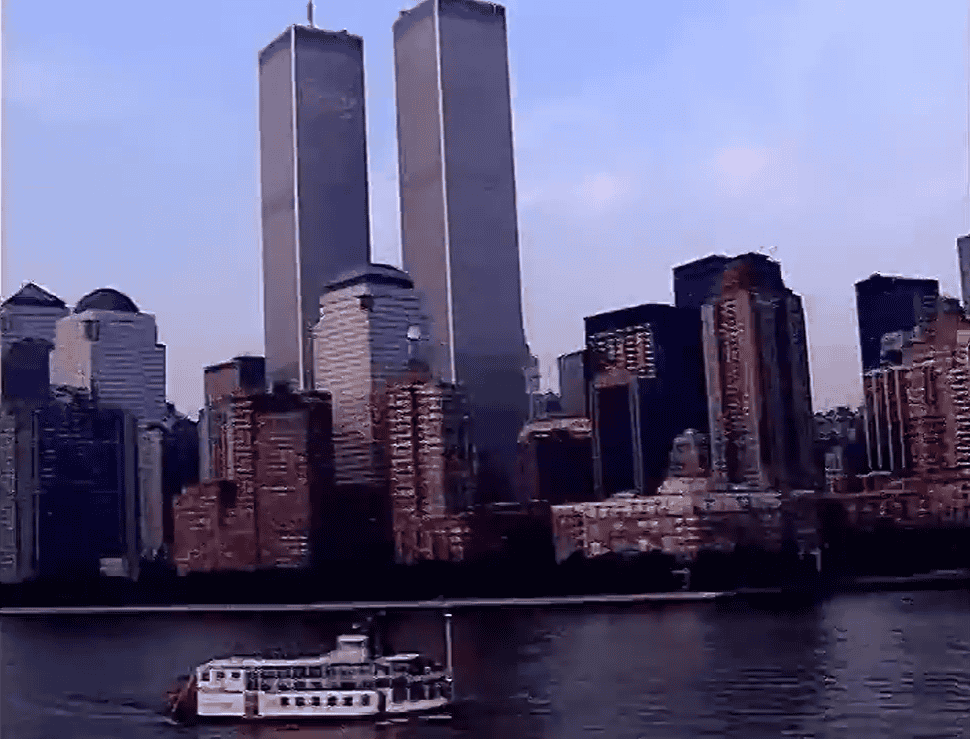 Several shots of the WTC towers, mostly near the beginning. Especially the title screen and under construction